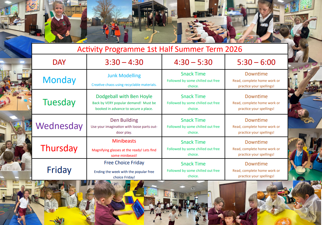 Shannon Crisp (TA) runs our After School Club! You can find out information about the After School Club below, such as which activities the children will do each day. Please book via Arbor