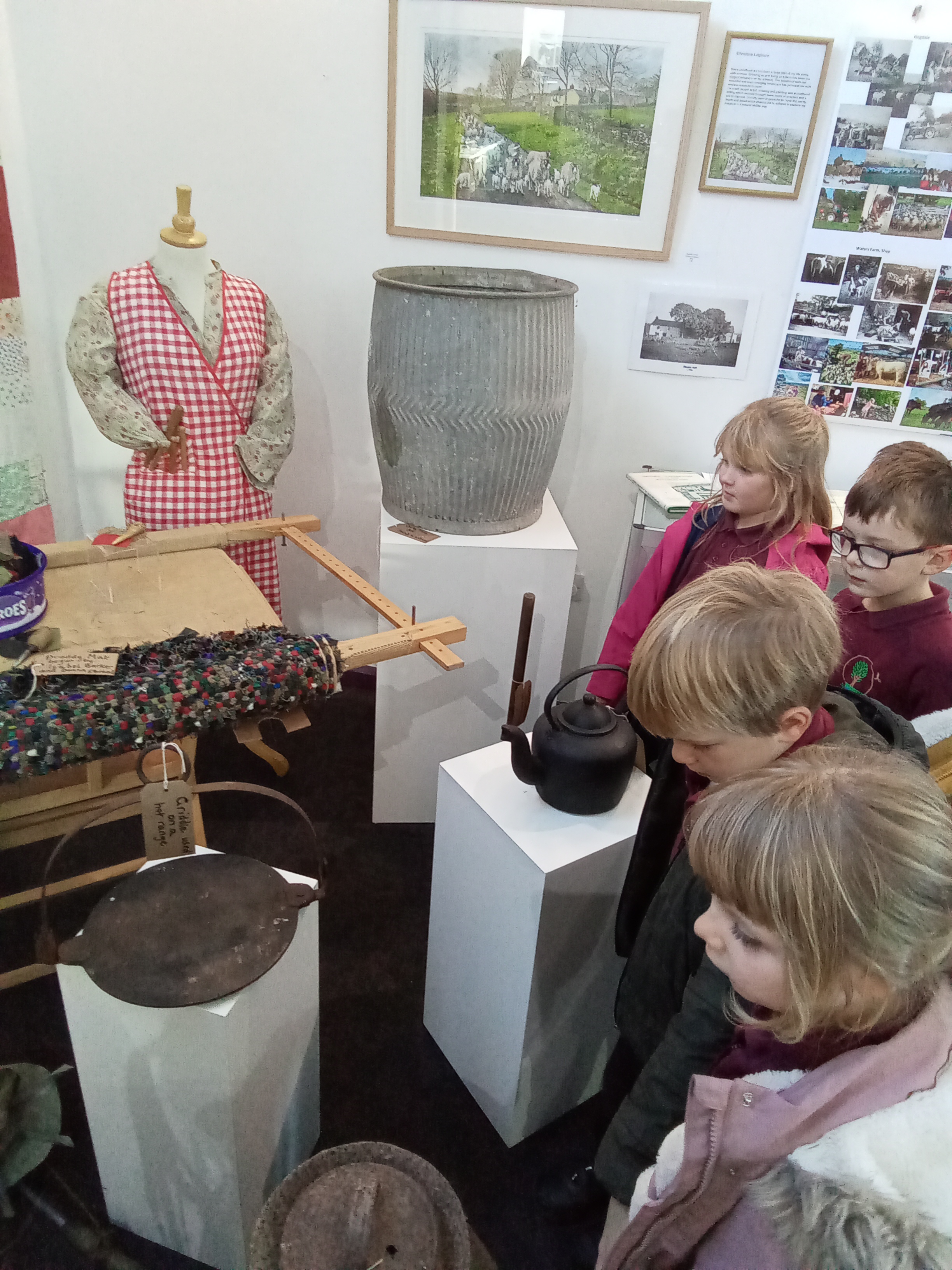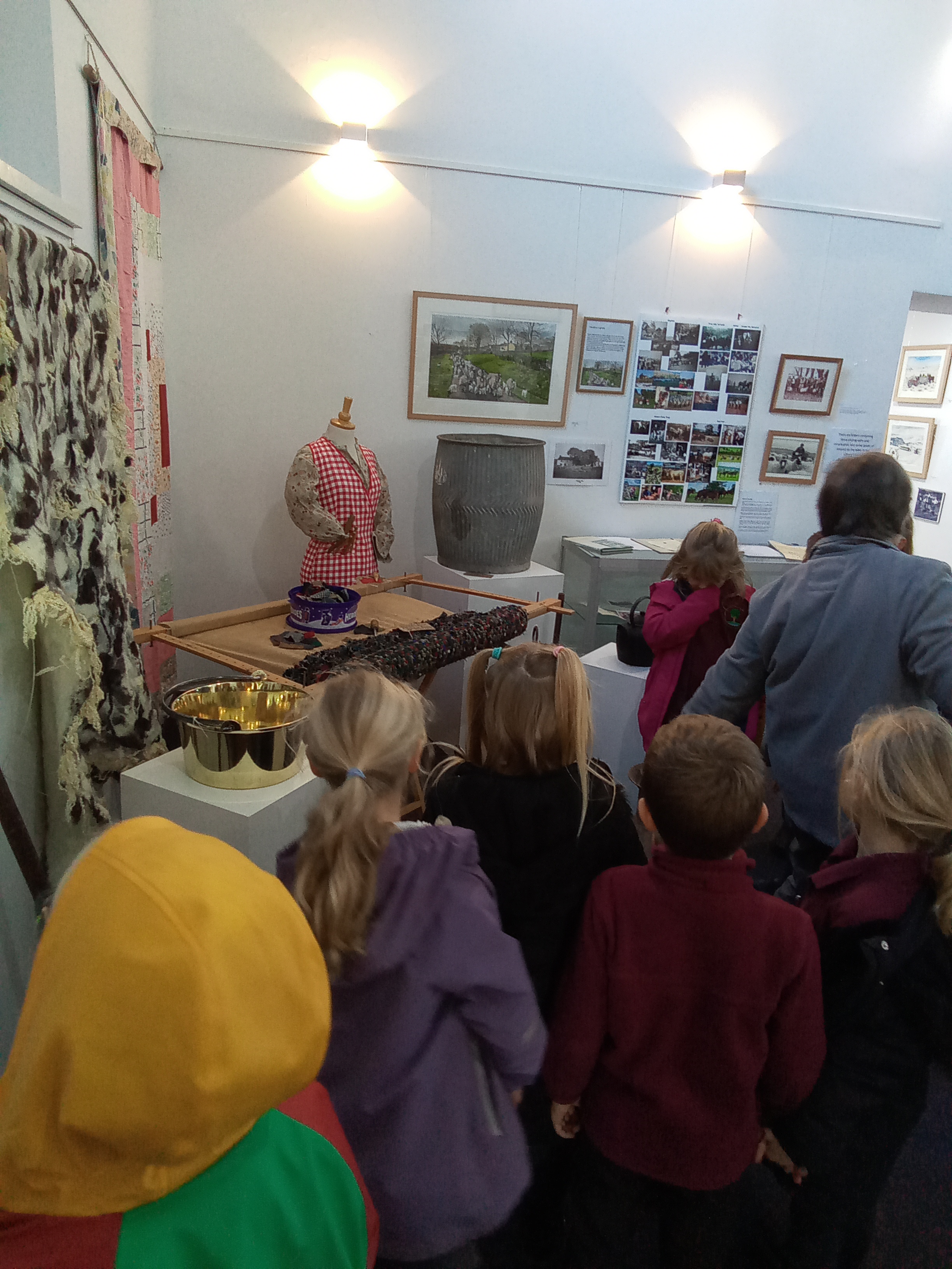 October 25 - The children visited Home - The Old Courthouse for the Fell Farming and Heritage Week in Shap. Janet Wood talked to the children about the things they would find in farm house kitchen 70 years ago. They looked at the farmhouse books and noted how computer now help, enormously, with accounts. They looked at the poses tub and dolly and noted how much less work a washing machine is.