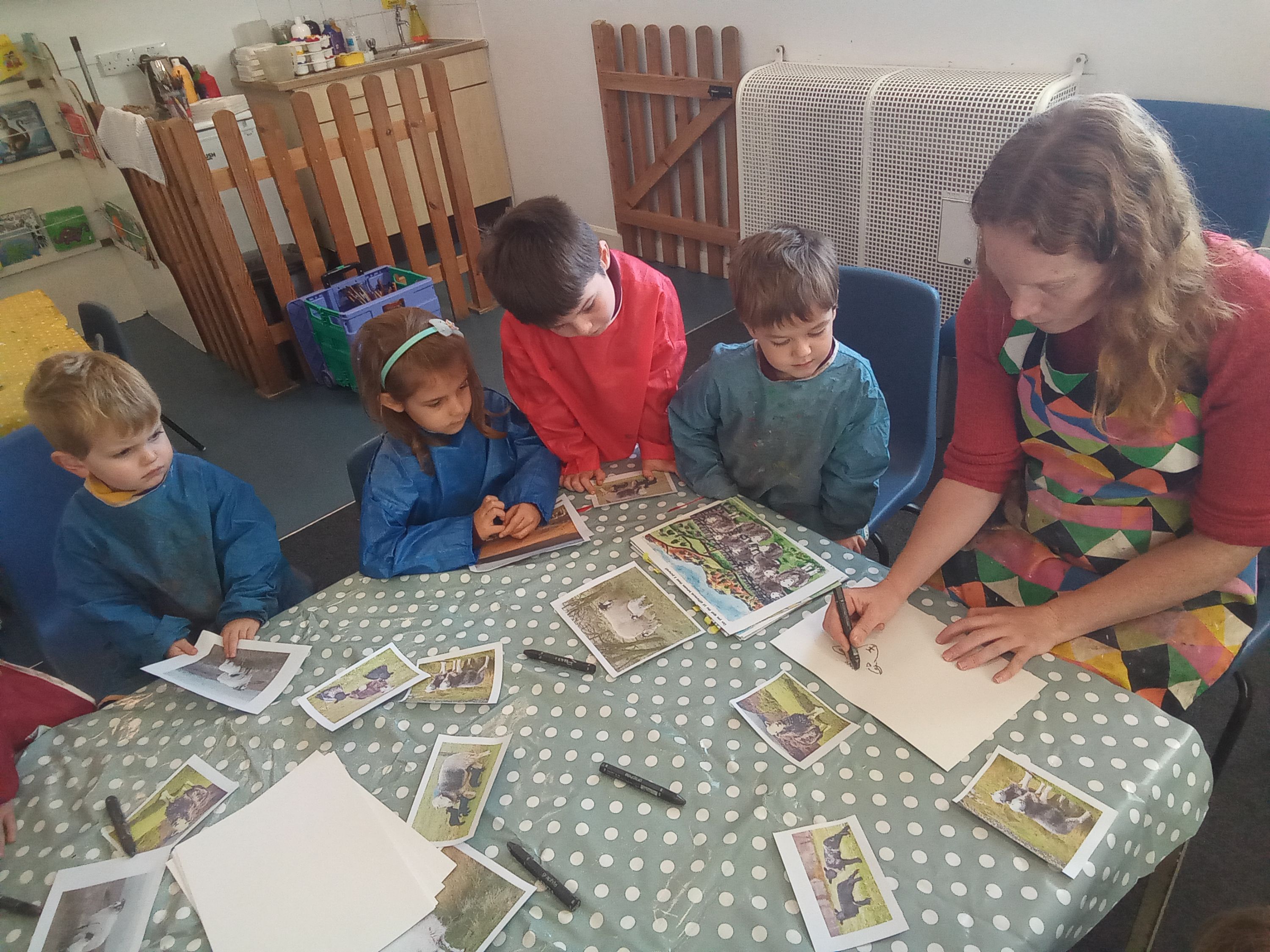 March'23 Each class visited the 'Pollinators' exhibition at The Old Courthouse. Year 6 buddies helped Catbells sketch pictures inspired by the amazing photographs.