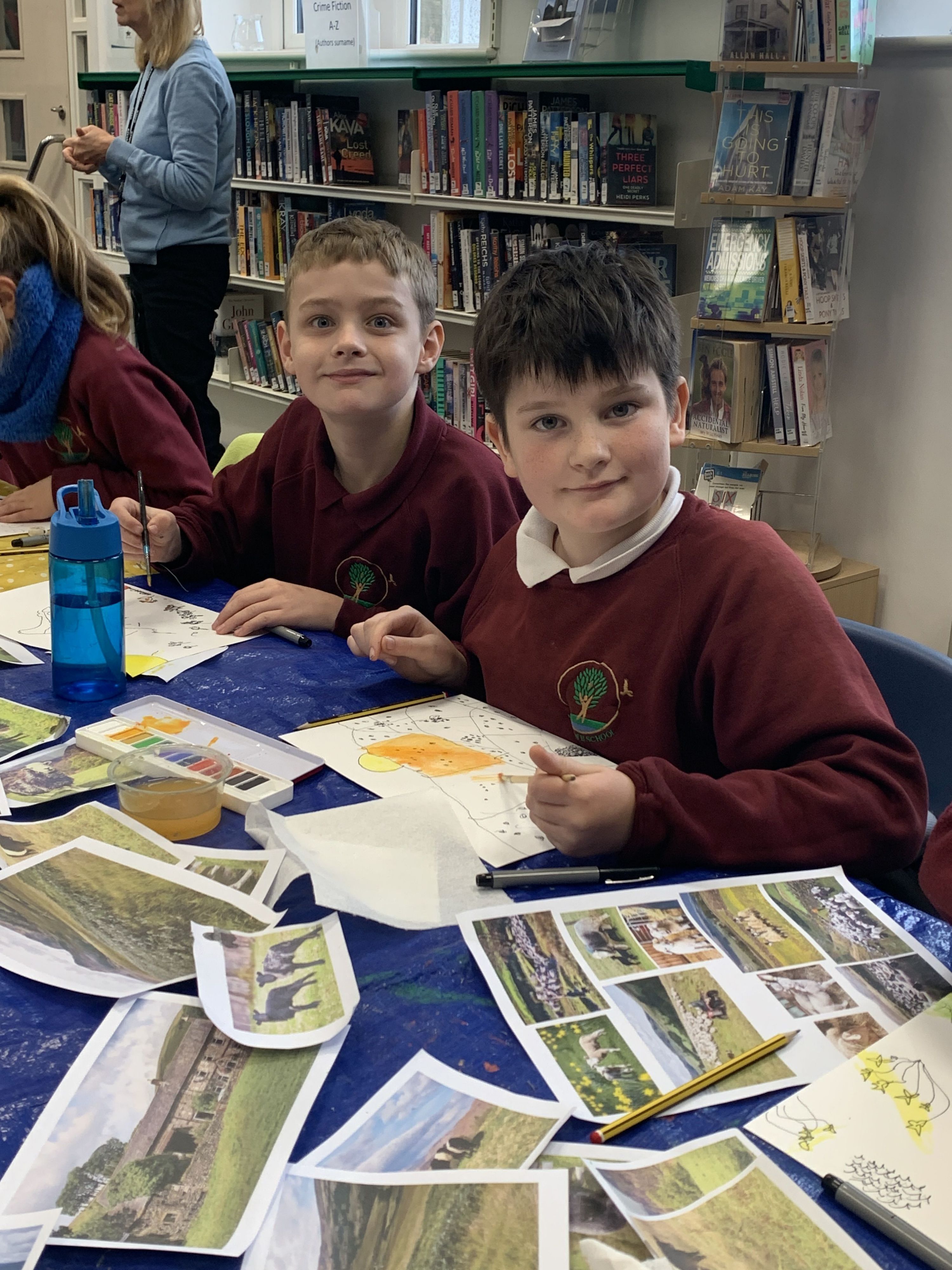 Artist Home - Sophie Martin Illustration worked with the children developing their observational drawing skills of local sheep, cow and pony breeds as part of the Community Fell Farming Heritage Week in Shap at Home - The Old Courthouse. They used water colours to paint trees in Autumn and Summer.